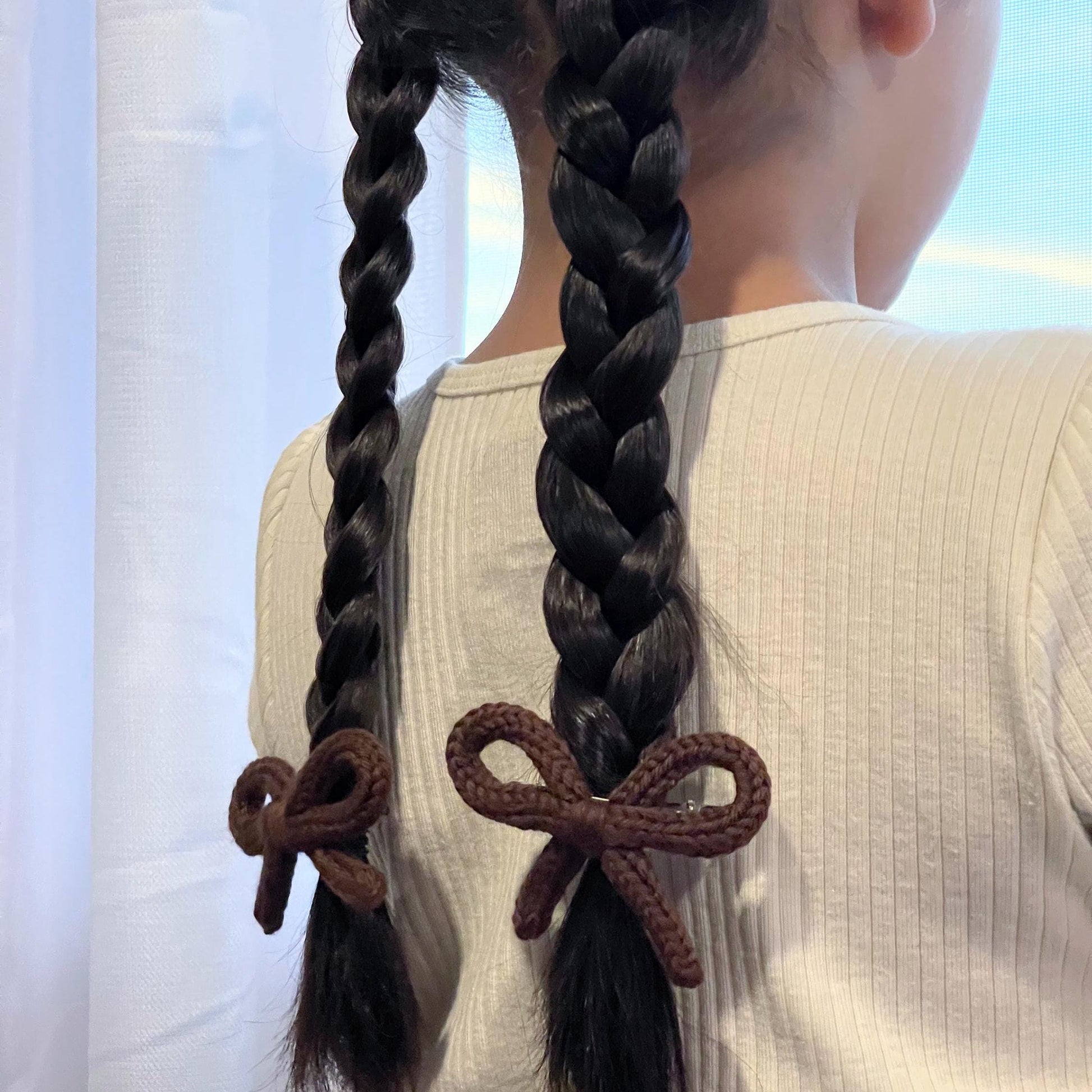 Crochet Bow Hair Clip Set: Knitted Cotton Pigtail Bows