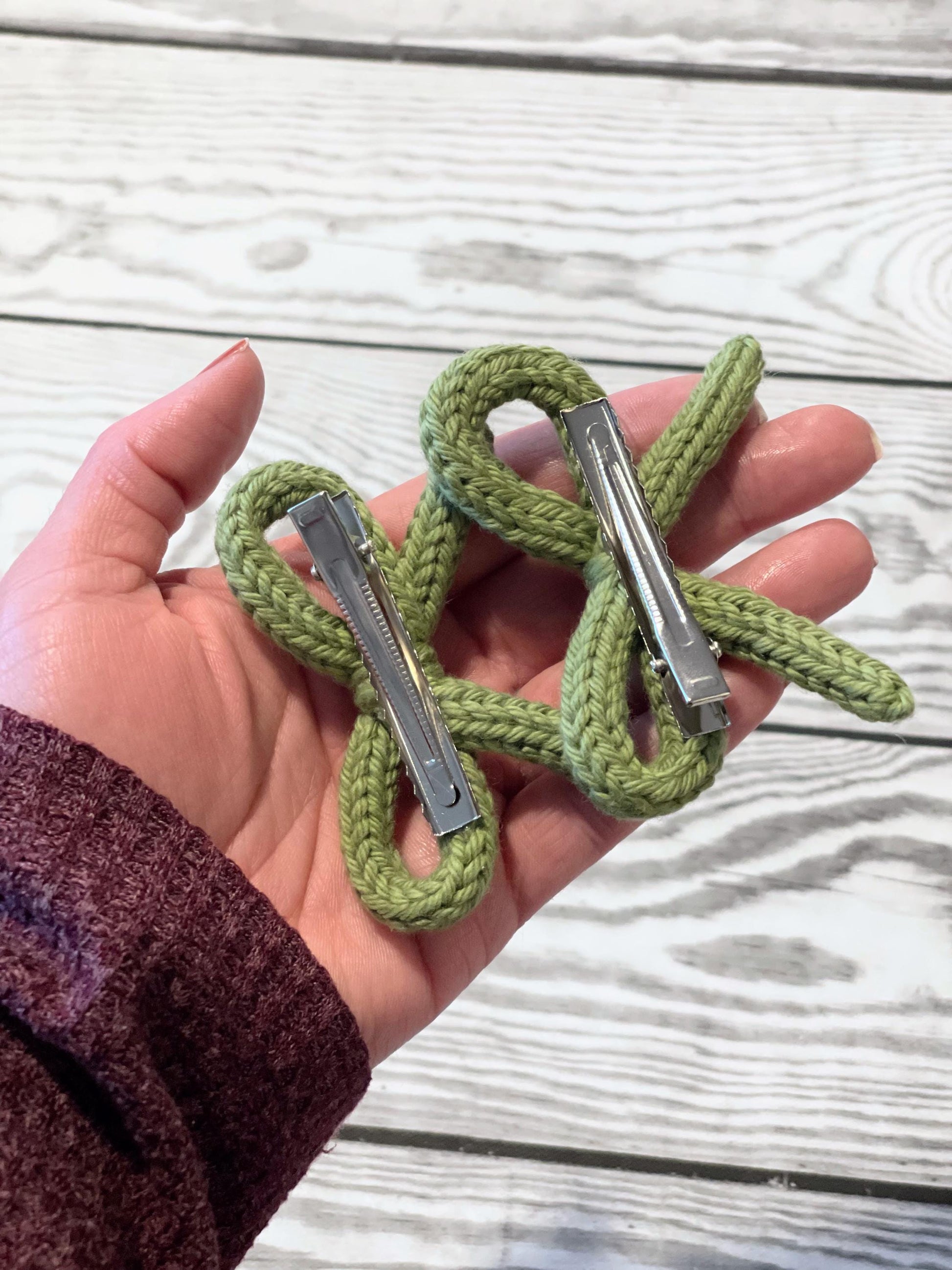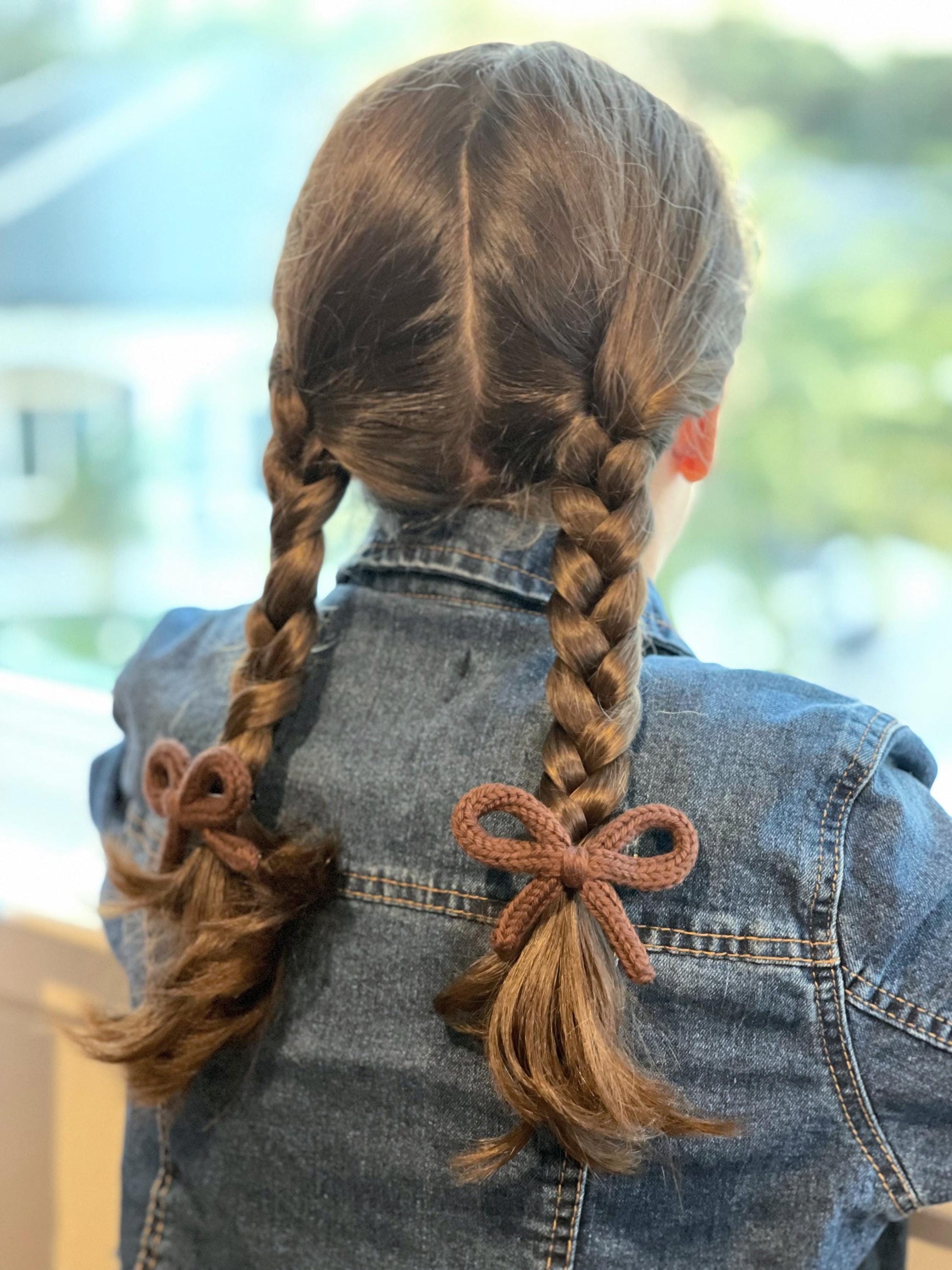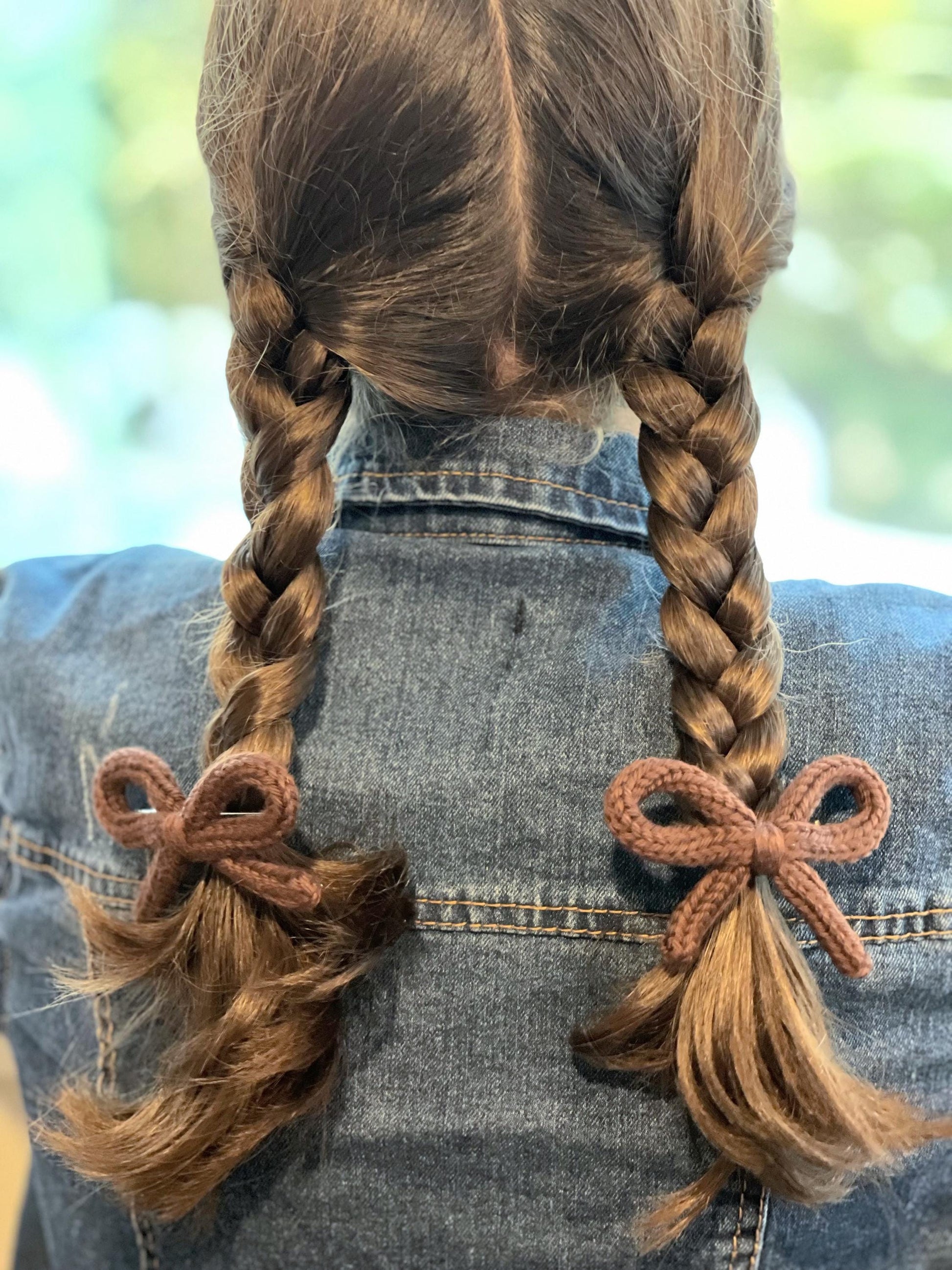 Crochet Bow Hair Clips: Knitted Cotton Pigtail Bows, Set of 2